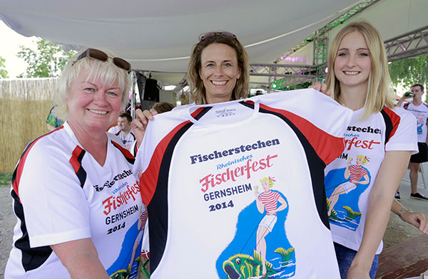 Was wäre das Gernsheimer Fischerfest ohne das legendäre Fischerstechen. Unser Foto zeigt (v.li.) Agi Mager, Dagmar Schmitt und Anne Schäfer. Foto: soe