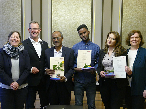 Gonca Karagöz, Christian Schönung, Wasihun Bekele, Mussie Nugusse Kidane, Marzia Surie, Jeanette Schröder (v.li.) bekamen letzte Woche ihre Zertifikate überreicht. Foto: Stadt Lorsch