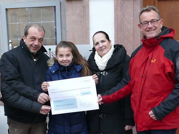 Das Team, (v.li) Sven Weigand, Mia Röntzsch, Birgitta Röntzsch, Bürgermeister Christian Schönung, vom Rutenhof freute sich über die Spende.