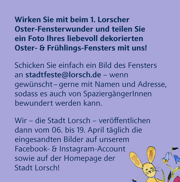 Das Kultur- und Tourismusamt der Stadt Lorsch lädt auch in Zeiten von Corona mit weiteren Aktionen zum Dabeisein und Mitmachen ein.
