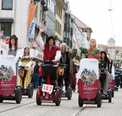 Majestätisch-vergnüglich: mittelalterliche Abordnung auf Segways aus Lorsch.