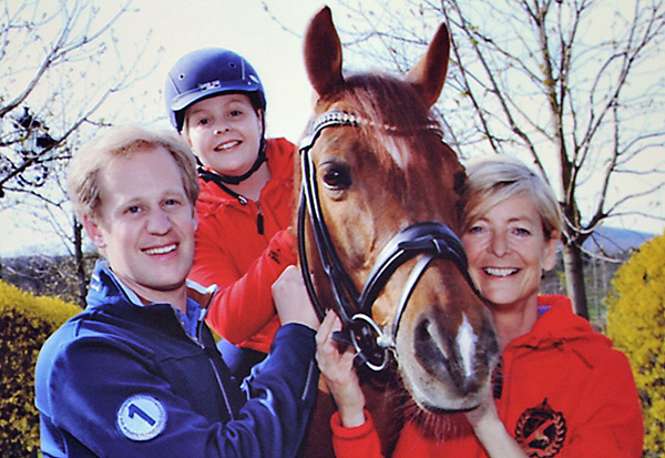 Ann Kathrin Linsenhoff reitet auf dem Roßmarkt zwischen den Hochhäusern, gemeinsam mit ihrer Tochter Marie und ihrem Stiefsohn Matthias. Foto: Gido Heß