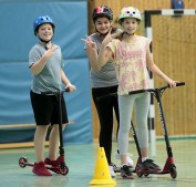 Noch mal genau aufgepasst, denn gleich geht’s los. Gesehen beim Sportunterricht zur Aktion „Wheel Up!“ der AOK Hessen in der Alsbacher Melibokusschule. Foto: soe