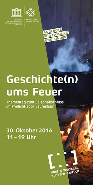LORSCH, Oktober 2016 (meli), Beim diesjährigen Saisonabschluss dreht sich im Freilichtlabor Lauresham am Sonntag, den 30. Oktober ab 11 Uhr, alles rund um das Thema „Feuer“. Für die Menschen des Mittelalters spielte Feuer eine essentielle, überlebenswichtige Rolle. mehr »