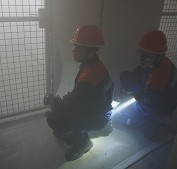 Der Angriffstrupp auf der Suche nach vermissten Personen in einem verrauchten Gebäude.
