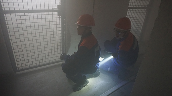 Der Angriffstrupp auf der Suche nach vermissten Personen in einem verrauchten Gebäude.