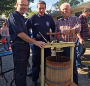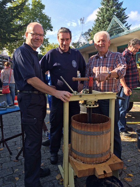 EBERSTADT, Oktober 2014 (meli), Am vergangenen Sonntag lud die Freiwillige Feuerwehr Eberstadt zu einem Kelterfest auf dem Feuerwehrgelände in der Heinrich-Delp Str. ein. Gezeigt wurde das Apfelkeltern mit einer traditionellen Handkelter, die Besucher konnten den frischen Most probieren und auch mit nach Hause nehmen. mehr »