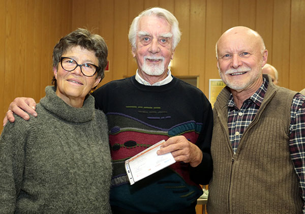 Für das Ablegen des inzwischen 52. Deutschen Sportabzeichens und die mit Abstand meisten erfolgreichen Prüfungen im TV Jugenheim wurde Herbert Gallinat von den Stützpunktleitern Klaus und Cornelia Muik besonders geehrt. Foto: soe