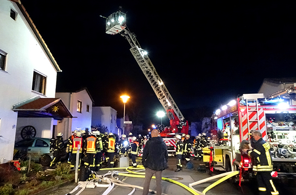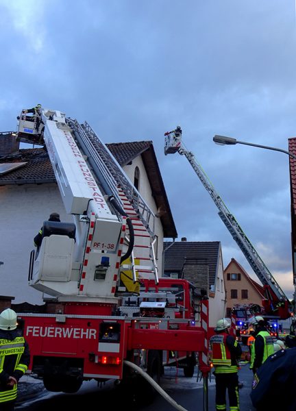 Die Einsatzkräfte wurden durch die Feuerwehr Pfungstadt zur nachbarlichen Löschhilfe bei einem Dachstuhlbrand angefordert. Foto: FF Seeheim