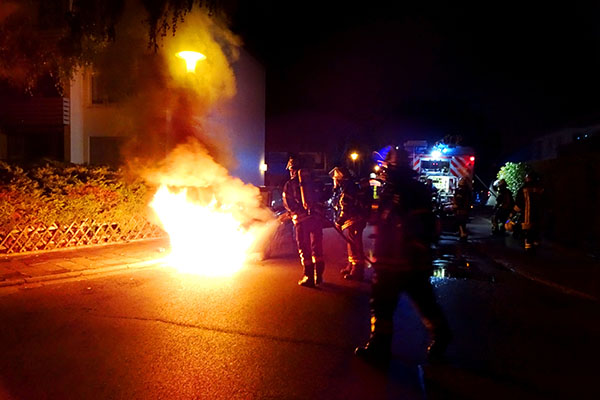 Aus bisher nicht bekannter Ursache kam es in der Straße „Am Grundweg“ zu einem Pkw-Brand. Foto: FF Seeheim