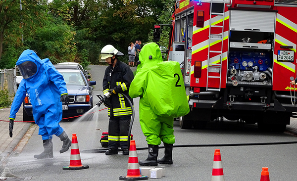 Auch die FF Seeheim war bei der Groß-Einsatzübung "Chemieunfall" dabei. Foto: Klaus Kraft