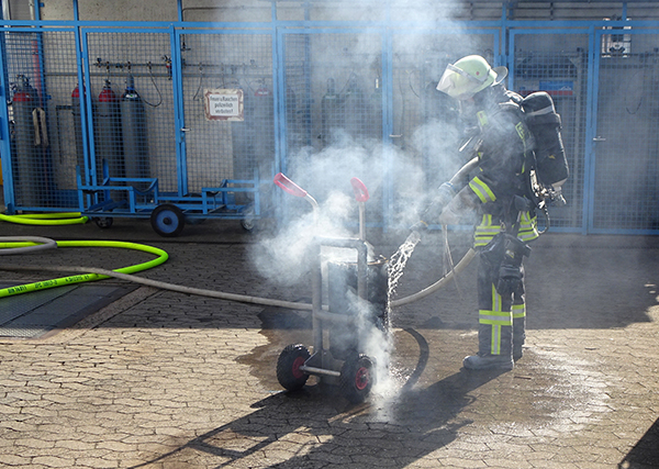 Unser Foto zeigt das endgülige Ablöschen von Filterelementen mit Wasser. Foto: FF Seeheim