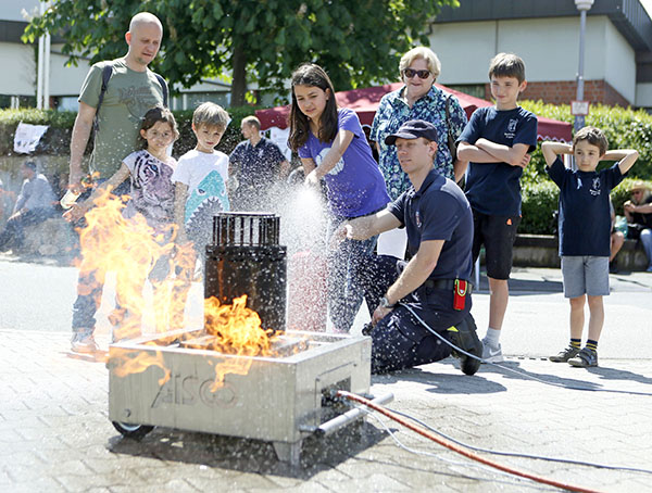 Den richtigen Umgang mit dem Feuerlöscher konnten alle bei Christopher Wich von der FFW Jugenheim üben. Foto: soe
