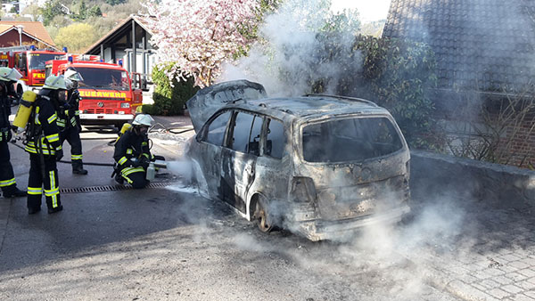 OBER-BEERBACH, April 2017 (meli), Zu einem Pkw-Brand in Ober-Beerbach wurden am Vormittag des 29. März um 9.52 Uhr die Freiwilligen Feuerwehren Ober-Beerbach und Seeheim alarmiert. Beim Eintreffen der Feuerwehr stand das Fahrzeug bereits in Vollbrand und konnte nicht mehr gerettet werden. Der den Löscheinsatz erfolgte mit zwei Rohren unter Atemschutz. Auch Löschschaum kam zur Verwendung. Nachlösch- und Aufräumarbeiten nahmen noch einige Zeit in Anspruch. Gegen 11 Uhr rückten die Einsatzkräfte wieder ab. mehr »