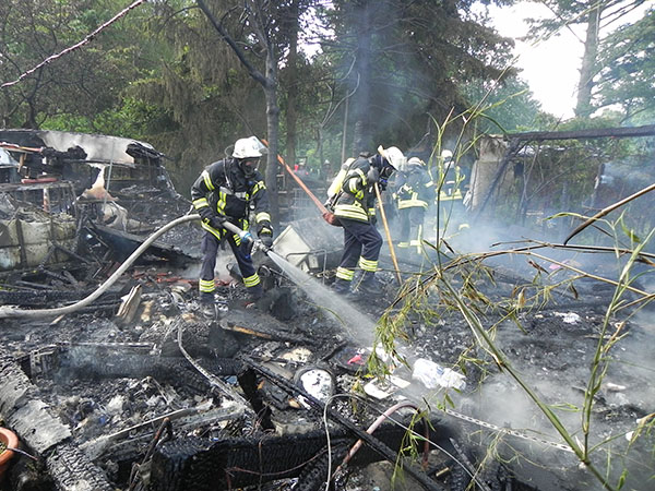Brand einer Gartenhütte sowie eines Wohnwagens