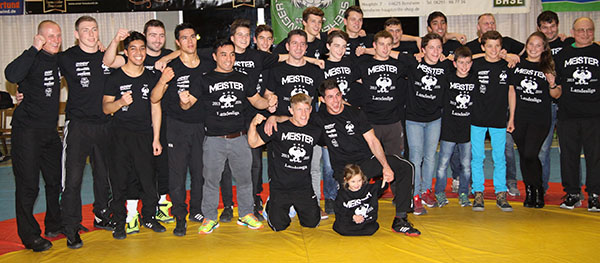 Die Ringer des KSV Seeheim feiern den Aufstieg in die Hessenliga und die gewonnene Meisterschaft