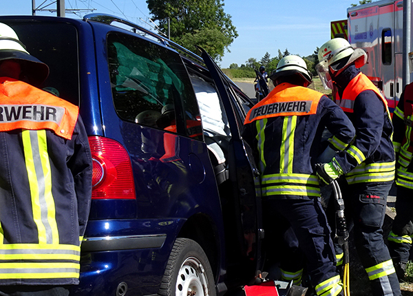 Zwei in einem Pkw eingeschlossene und schwerverletzte Personen mussten geborgen werden. Foto: Feuerwehr Seeheim