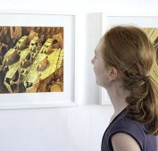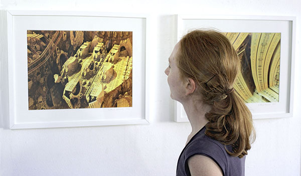 Eine Auswahl prämierter Computerbilder, basierend auf algebraischen Flächen, zeigt die Künstlerin Hiltrud Heinrich in der Treppenhausgalerie. Foto: Stefan Oelsner
