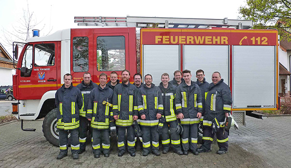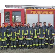 Da strahlen die Feuerwehrmänner nach der erfolgreich absolvierten Feuerwehrleistungsübung.
