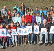 Eine Woche sind 29 Kinder und ihre zehn Betreuer aus der französischen Schwesterstadt Villenave d´Ornon zu Gast in Seeheim-Jugenheim. In den Händen halten die jungen Franzosen das Symbol der Verschwisterung: Zwei Tauben, die sich einen Zweig überreichen. Foto: pae