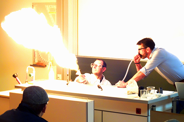 Bei einer simulierten Staubexplosion wurde die starke Flammenbildung gezeigt. Foto: FF Seeheim