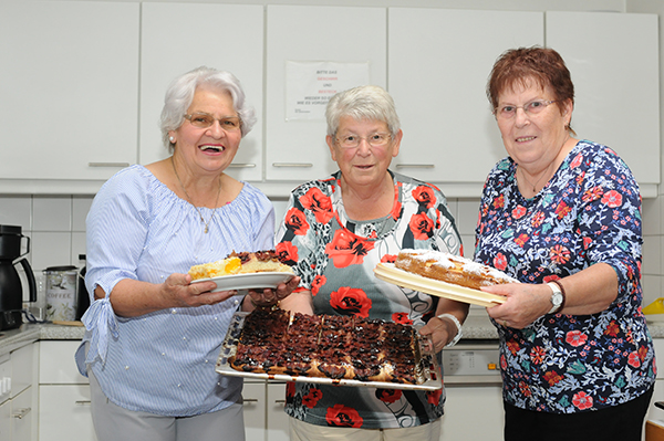 Die fleißigen Bäckerinnen vom Dienst: Waltrud Orluk, Waltraud Schimpf und Inge Rohr (v.li.) servierten leckeren Zwetschgen- und Apfelkuchen. Foto: Eva M. Wicht