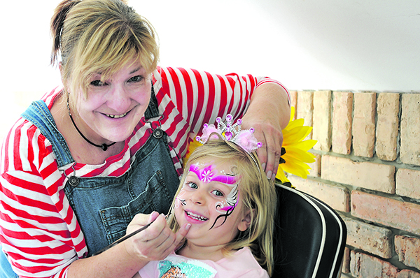 Prinzessin mit viel Glitzer ist der Dauerbrenner auf jeder Kinderparty. Pinselschlumpf Petra Ahlheim (li.) greift aber auch immer neue Trends auf und verzaubert damit jedes Kind ganz individuell in seine Traumfigur. Foto: Eva M. Wicht