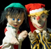 Kasperle und Seppel freuen sich auf viele kleine Besucher.