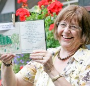 Gisela Kissel mit einem Poesiealbum, das ein Originaleintrag von Eduard Mörike schmückt. Foto: soe