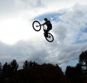 Salti und Freiflug zwischen Himmel und den Bergen der Bembelbahn sorgten für Fahrrad-Akrobatik vom Feinsten. Foto: soe