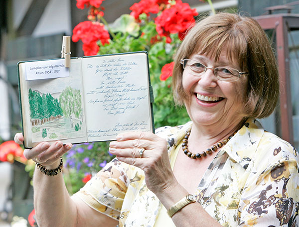 Gisela Kissel mit einem Poesiealbum, das ein Originaleintrag von Eduard Mörike schmückt. Foto: soe