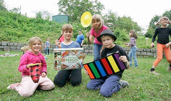 Viele tolle Zaubertricks zum Staunen haben Luise, Romain und Finn (v.li.) einstudiert. Foto: soe