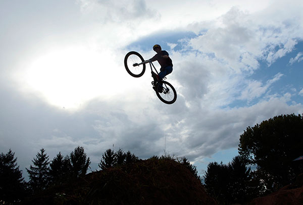Salti und Freiflug zwischen Himmel und den Bergen der Bembelbahn sorgten für Fahrrad-Akrobatik vom Feinsten. Foto: soe