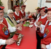 Geschafft! Die Zwingenberger Privilegierte Schützengesellschaft feuerte ihr Böllerschüsse zur Eröffnung ab. Jetzt erst mal eine guten Tropfen genießen. Foto: Berno Nix