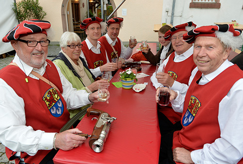 Geschafft! Die Zwingenberger Privilegierte Schützengesellschaft feuerte ihr Böllerschüsse zur Eröffnung ab. Jetzt erst mal eine guten Tropfen genießen. Foto: Berno Nix
