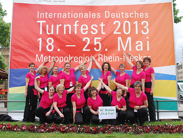 RODAU, Juni 2013 (meli), Nachdem Aufstieg der Fußballer in die Kreisoberliga kann sich der SC Rodau über ein weiteres Highlight im Monat Mai freuen. Die Gymnastikgruppe Fit & Fun des Vereins nahm mit Erfolg am Internationalen Deutschen Turnfest in Mannheim teil. Dort am Wasserturm, wo sich die Festmeile befand, hatten 15 Frauen am letzten Festtag zwei Auftritte auf der Schaubühne. mehr »