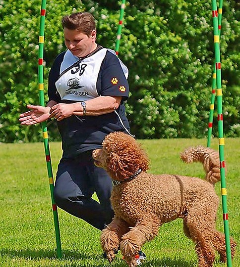 Heidrun Pauli und Finn im Slalom. Foto: S. Baumgarten
