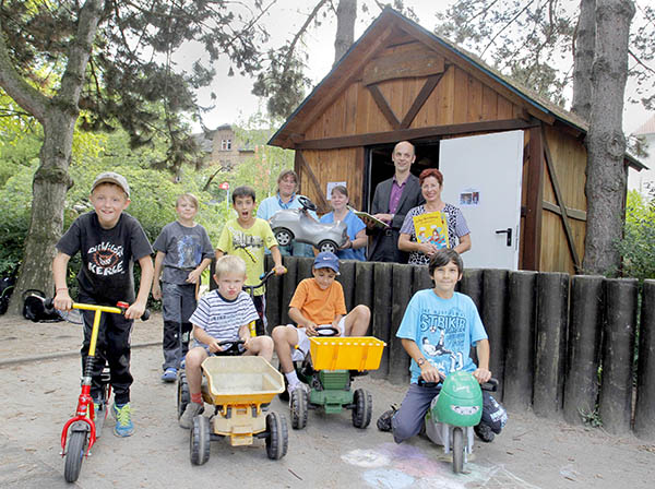 Die von den Zwingenberger „Zwergen“ übernommene Hütte beherbergt ab sofort Spielsachen, Kinderfahrzeuge und von der Stadtbücherei Zwingenberg gespendete Bücher.