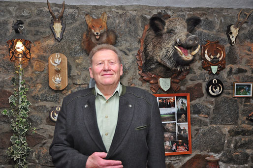 Den größten Keiler mit Sage und Schreibe 80 Kilogramm Lebendgewicht hat Horst May als Kopfpräparat zwischen unzähligen weiteren Wildtierpräparaten, Urkunden und Gehörnen als Dekoration im eigens dafür hergerichteten "Jagdkeller" seines Hauses verewigt.