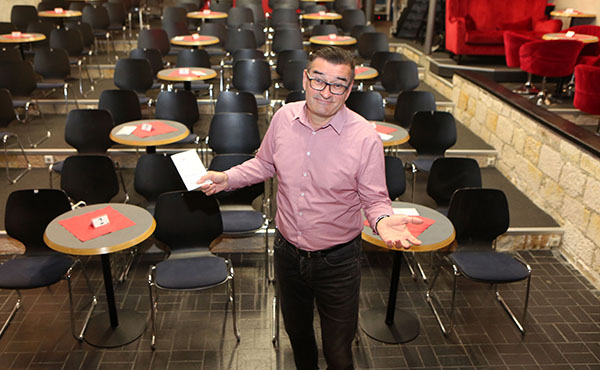Auf leere Ränge blickt Leo Ohrem, Vorsitzender des Vereins „Theater Mobile Bergstraße e.V.“ in Zwingenberg in seinem Theater. Foto: soe