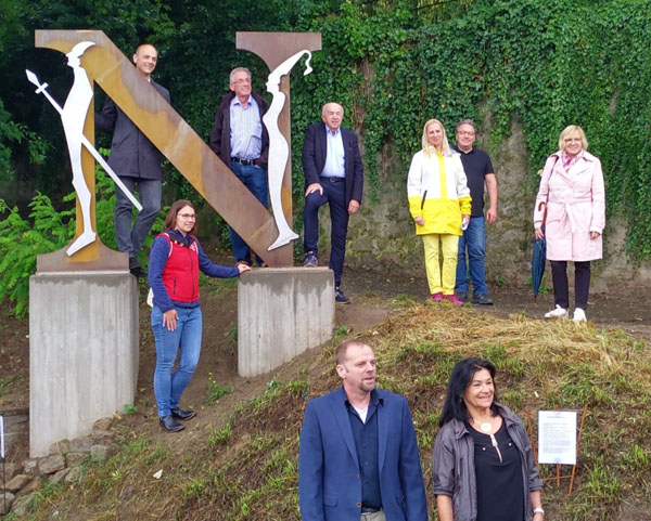 ZWINGENBERG, Juni 2020 (meli), Am Mittwoch dieser Woche wurde in Zwingenberg an der Bergstraße ein neues Kunstwerk offiziell eingeweiht. Ein stählernes „N“ ziert nun den Einstieg des Qualitätswegs Nibelungensteig. Das von der Künstlerin Ulrike Fried-Heufel entworfene und dem Metallbauer Rudolf Müller umgesetzte Stück verleiht dem Einstieg einen gewissen Glanz.