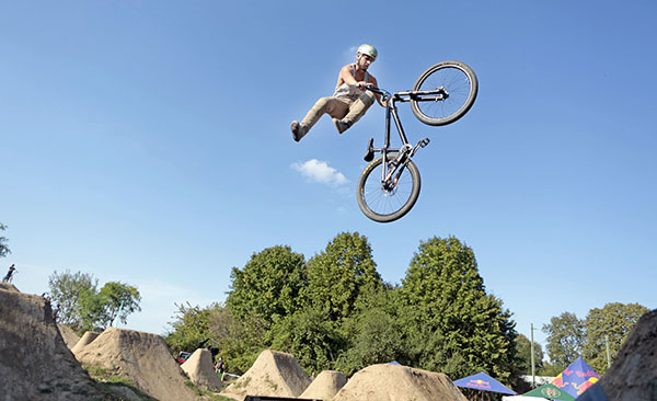 Die Biker zeigten auf der neuen Strecke spektakuläre Sprünge und Stunts. Foto: soe