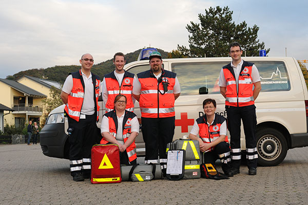 Das „First-Responder-Team“ des DRK Zwingenberg: Udo Bächer (hi.Reihe v.li.; Rettungssanitäter), Jan Pieper (Notfallsanitäter), Johannes Bürkle (Sanitäter), Michael Danninger (Sanitäter), (vorne kniend, v.li.) Mandy Messerschmidt (Sanitäterin) und Silvana Anthes (Sanitäterin). Es fehlen: Wolfgang Anthes (Notfallsanitäter), Laura Emig (Rettungssanitäterin), Benjamin Becker (Sanitäter), Iris Gerhardt (Notfallsanitäterin), Vanessa Räffle (Sanitäterin) und Tobias Räffle (Sanitäter). Foto: Eva M. Wicht