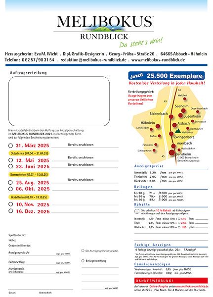 Wenn Sie im Melibokus Rundblick oder auf „Melibokus Rundblick online“ werben möchten,