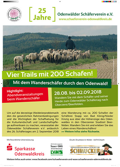 In vier Trails werden 200 Schafe mit dem Schäfermeister Markus Stapp etappenweise durch die Höhenzüge des Odenwaldes wandern. Höhepunkt der Wanderung ist dann der Einzug der Herde am 2. September 2018 in die Professor-Walter-Hoffmann Halle anlässlich des 26. Odenwälder Schäfertages. Diese Wanderung ist auch Bestandteil der 25. Odenwälder Lammwochen; die über die Grenzen des Odenwaldes hinaus eine Bereicherung für den Tourismus im Odenwald sind. Federführend für die touristische Vermarktung ist hier die Tourismus Odenwald GmbH.