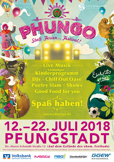 PFUNGSTADT, Juni 2018 (meli), Vom 12.-22. Juli 2018 kommt das sensationelle, bunte und abwechslungsreiche PHUNGO-Festival nach Pfungstadt. Unter dem Slogan „statt Ferien…Festival!“ werden 11 Tage voller großartiger Erlebnisse garantiert. Und all das erhält der Besucher bei freiem Einritt!