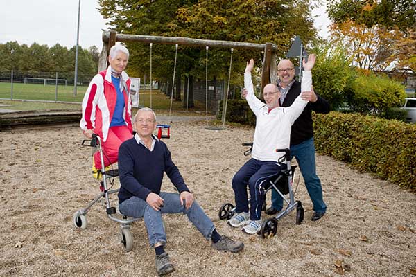 AUERBACH, November 2016 (DZ), Immer mehr Menschen greifen im Alter, nach einer Erkrankung oder Unfall auf die Unterstützung eines Rollators zurück, um sich in den eigenen vier Wänden sicher bewegen zu können. Auch wenn Rollatoren die Bewegungsfreiheit in vielen Lebensbereichen unterstützen sollen, werden sie oft nur zu Hause eingesetzt. Hierbei sind falscher Scham und die Angst einzugestehen, dass man älter wird meist die Gründe hierfür und wer darauf angewiesen ist, verlässt deswegen immer seltener oder gar nicht das Haus. „Aber auch falsche Nutzung oder der falsche Rollator sind daran schuld“, erläutert Thorsten Grießer von der Orthopädie-Technik Krieg GmbH aus Seeheim-Jugenheim bei der gemeinsamen Vorstellung von Rollator Fit in Bensheim. „Ein häufiger Fehler ist ein zu niedriger oder zu niedrig eingestellter Rollator, so dass man beim Laufen immer nur auf den Rollator schaut und den Rücken immer gebeugt hält“, erklärt Roland Scherer von TSV Rot-Weiß Auerbach und demonstriert die Falschhaltung an einem Rollator.