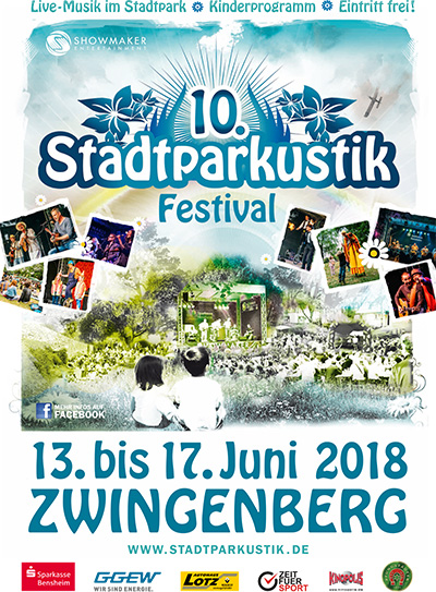 ZWINGENBERG, Mai 2018 (meli), In diesem Jahr feiert Stadtparkustik-Festivals einen 10. Geburtstag. Dabei gibt es volle fünf Tage lang, vom 13. bis zum 17. Juni 2018 akustische Musik und fabelhaftes Kinderprogramm in der besonderen Atmosphäre des Stadtparks. Und wie jedes Jahr ist der Eintritt frei!