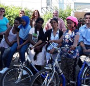 BENSHEIM, Juli 2016 (meli), Das Zusammenspiel mehrerer Institutionen und Gruppierungen ermöglicht es seit 2009, dass Frauen, die aus einem anderen Kulturkreis hierhergekommen sind, die Mobilität mit dem Fahrrad erlernen können. Für den bereits neunten von der städtischen Frauenbeauftragten Marion Huhn organisierten Fahrradkurs kommt diese Woche eine Gruppe von jungen Frauen und Mädchen im Schulhof der Geschwister-Scholl-Schule zusammen. mehr »
