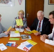 Wie weiter mit Tempo 30? Sylvia Weber (Leit. Sozialamt), Ingrid Neuendorf aus Lorsch (Beisitzerin), Manfred Ochsenschläger (stellv. Vorsitzender) und Bürgermeister Christian Schönung.